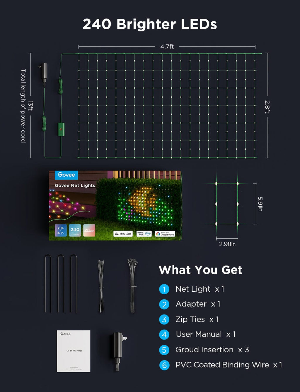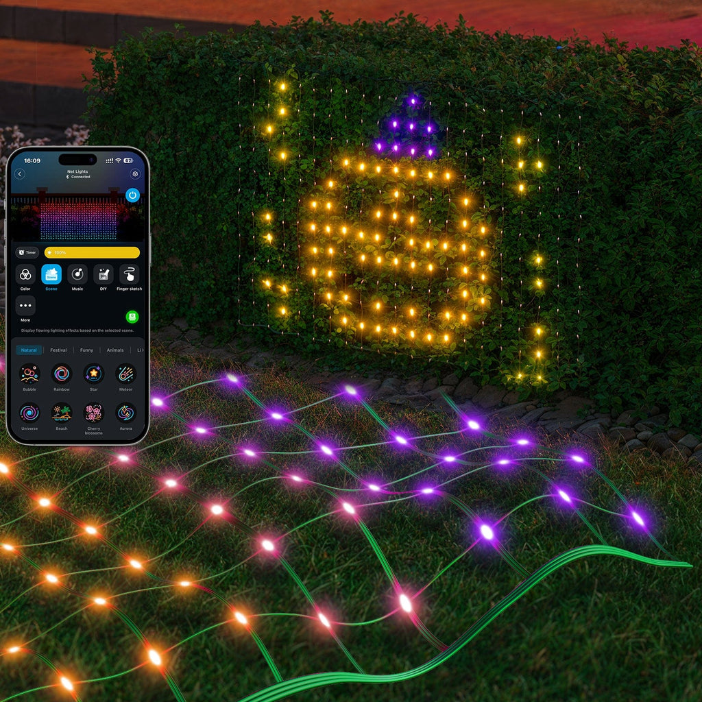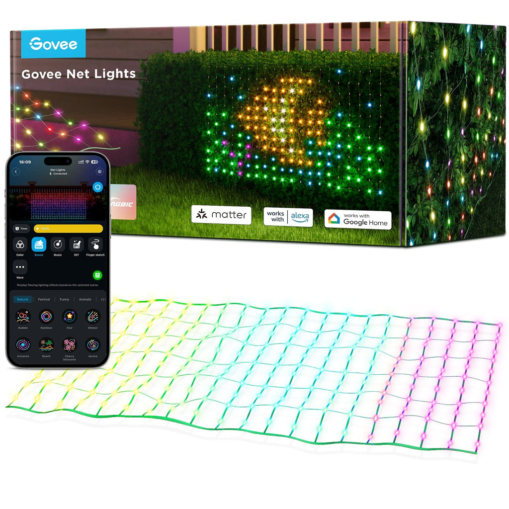 Govee LED mrežne luči so zasnovane za osvetlitev vašega vrta ali zunanjih površin z živahnimi barvami in prilagodljivimi svetlobnimi učinki. S svojo napredno RGBIC tehnologijo in vremensko odpornim dizajnom so idealna izbira za vsakogar, ki želi izboljšati zunanji ambient.