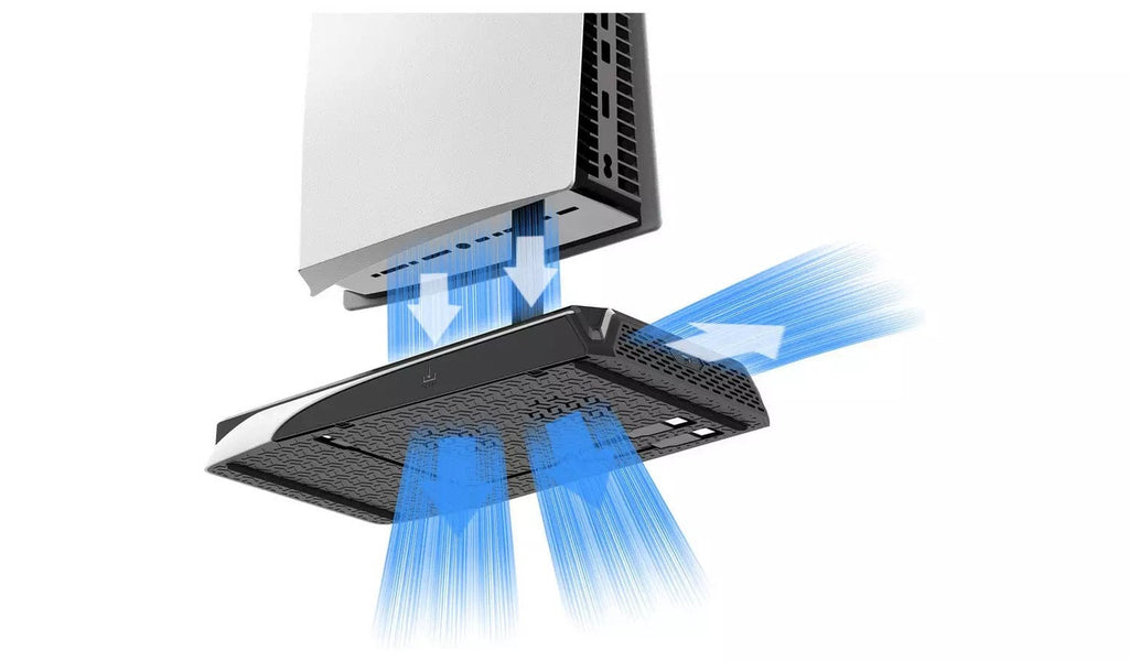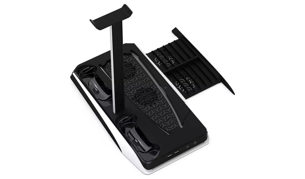 IMP TECH DLX+ LED je večnamensko hladilno stojalo za PS5 konzole, ki ne ponuja le priročnega odlaganja in polnjenja z vgrajenim magnetim polnilcem za dva Dualsense kontrolerja, temveč vključuje tudi vgrajena dva hladilna ventilatorja, ki preprečujeta pregrevanje konzole, in novo večbarvno osvetlitev LED, ki vašemu igralnemu prostoru doda nekaj navdušenja. Stojalo se napaja s povezavo USB z vašo konzolo ali s priključitvijo priloženega kabla na kateri koli izhod 3A, vključuje pa tudi priročno stojalo za slušalke in izvlečno stojalo za medije, kamor lahko shranite do 12 svojih iger ali filmov. Kot da to ne bi bilo dovolj, saj vemo, kako dragoceni so lahko priključki USB, da so vse vaše naprave povezane, boste na sprednji strani stojala našli 2 dodatna izhoda USB.
