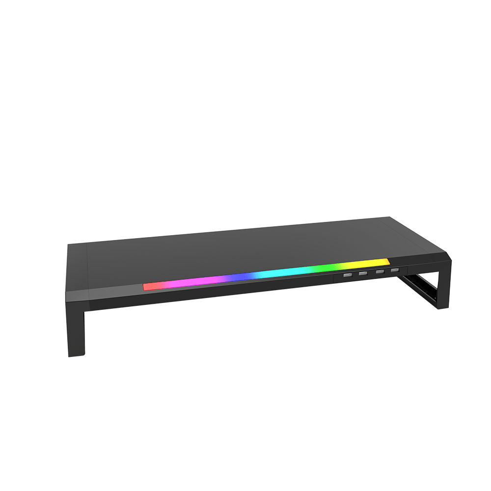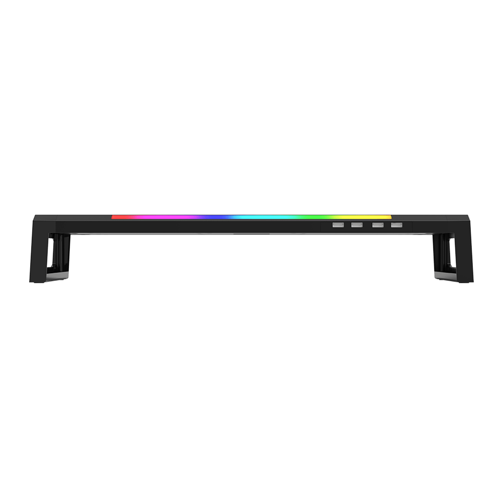 stojalo za računalniški monitor z RGB osvetlitvijo. Stojalo ima štiri