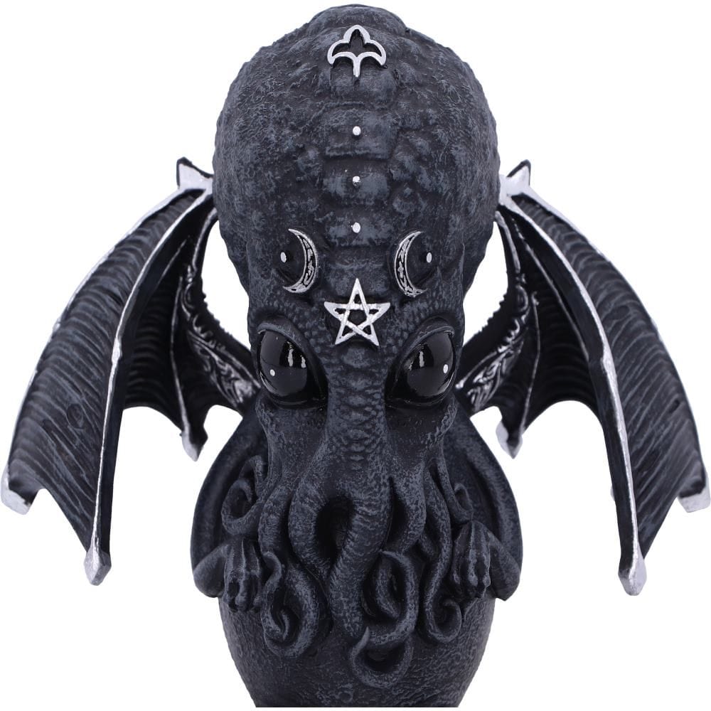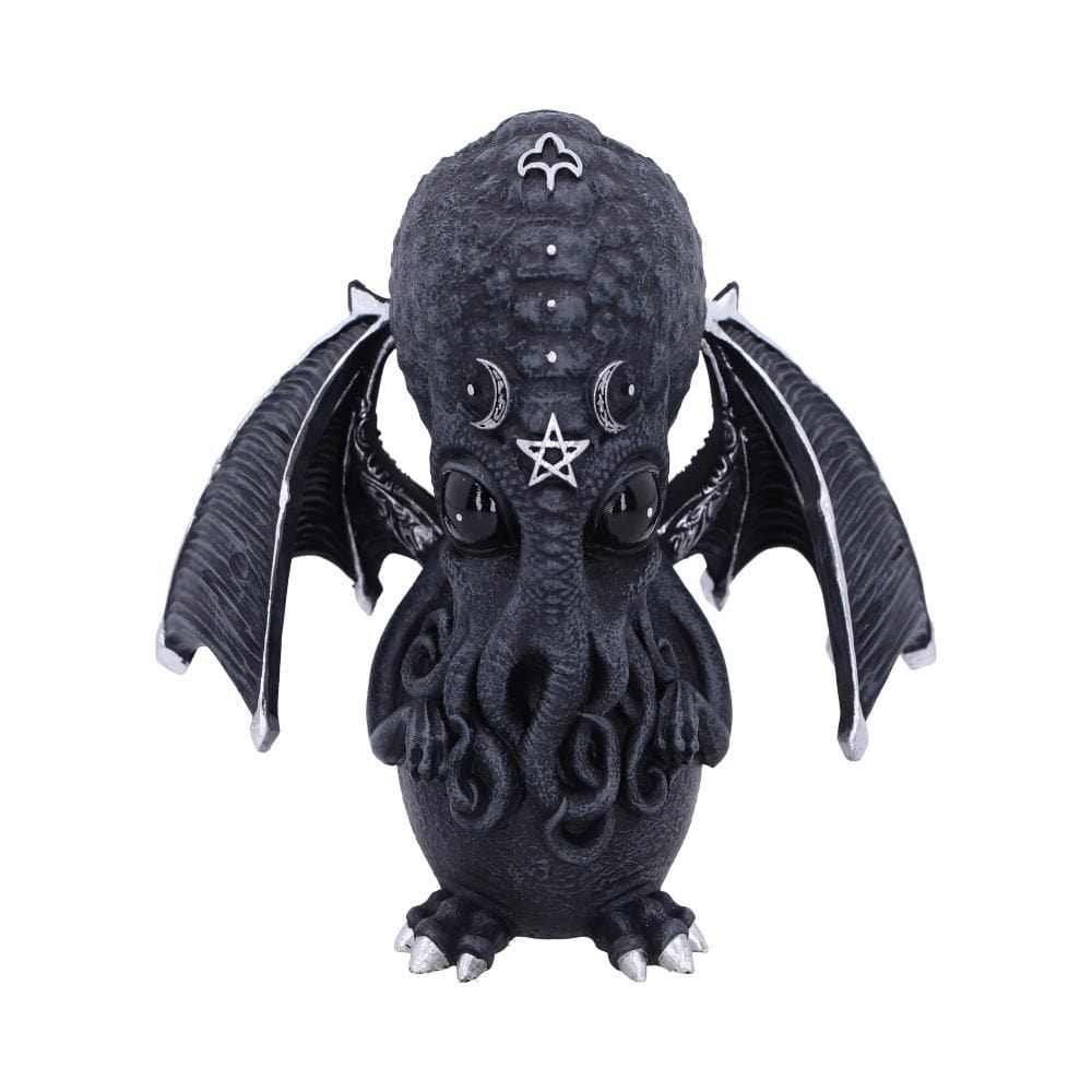 Iz očarljivega uma notranje oblikovalske ekipe podjetja Nemesis Now prihaja ta očarljiv, široko razgledan Culthulhu. A naj vas ljubkost ne zavede, ko se zazrete v njegove črne oči, opazite temo, ki se v njih skriva. To mitsko bitje spominja na človeško hobotnico, z človeškimi rokami in nogami. Poleg tega ima tudi duh vampirja z izstopajočimi netopirskimi krili in okrašenimi srebrnimi detajli. Ta figurica je ulita iz visokokakovostne smole in je skrbno ročno poslikana, zato bo verjetno najbolj prikupen okultist, kar ste jih kdaj videli.